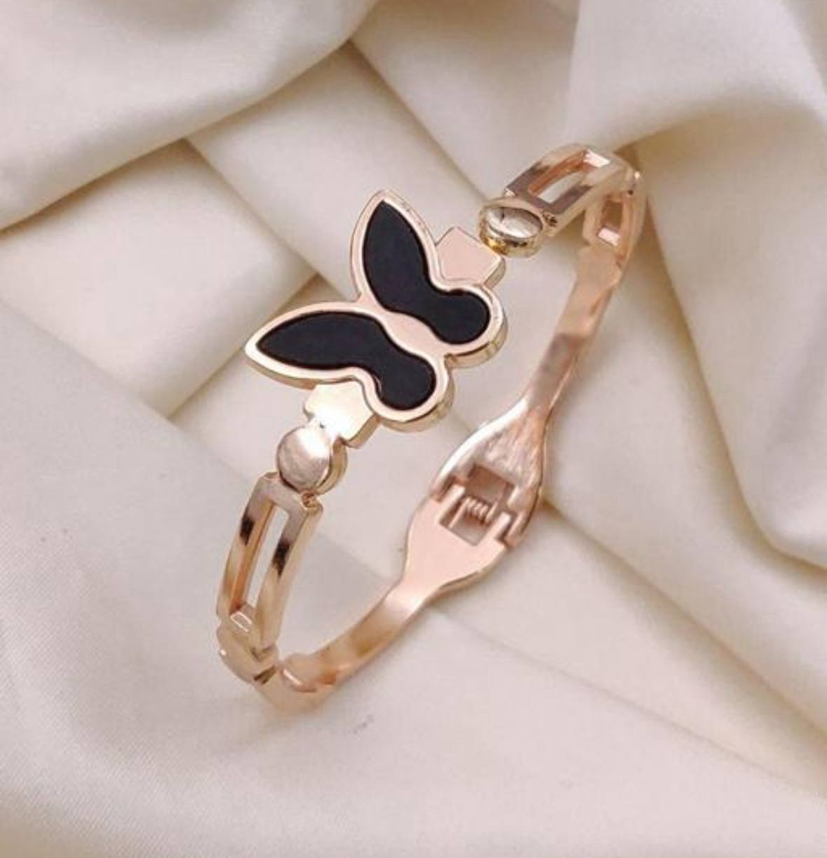 Turn heads with this stunning butterfly bracelet, the perfect blend of elegance and modern style. Designed with a sleek rose gold bracelet finish and a bold black butterfly centerpiece, this adjustable butterfly bracelet adds a chic touch to any outfit.
